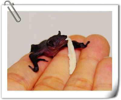 餵食時儘量讓蝙蝠寶寶頭下腳上避免奶水不小心進到氣管或肺